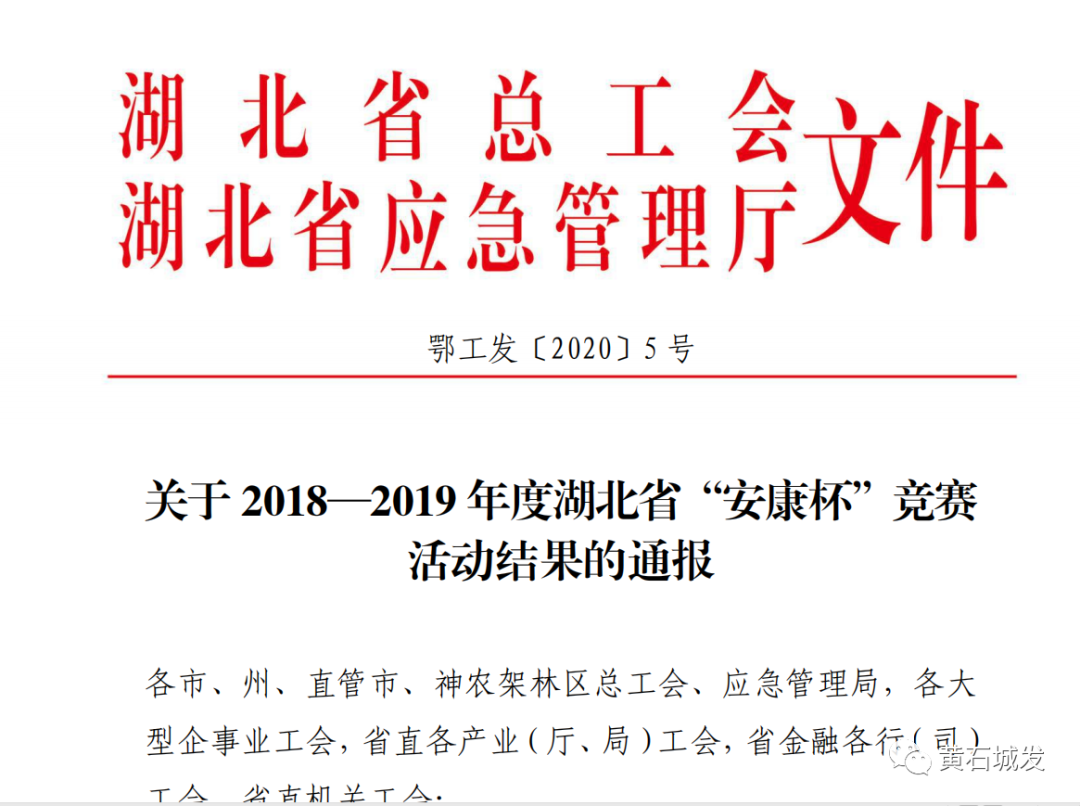 【集團(tuán)要聞】集團(tuán)公司獲評(píng)2018—2019年度湖北省“安康杯”競(jìng)賽優(yōu)勝單位